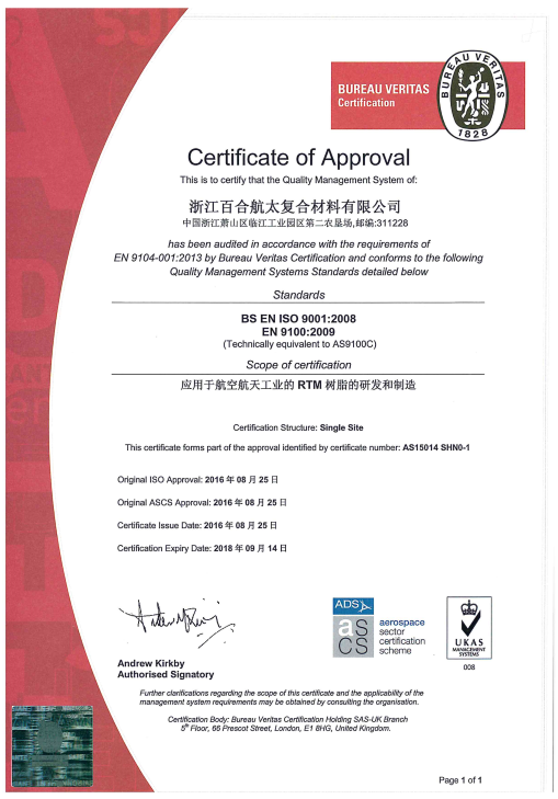 浙江百合航太復合材料有限公司成立于2014年,是集先進復合材料產(chǎn)品開發(fā)設計、生產(chǎn)、銷售、服務于一體的高新技術企業(yè), 主要產(chǎn)品有復合材料液體成型樹脂、碳纖維、玻璃纖維和芳綸纖維預浸料、以及結(jié)構(gòu)粘合劑膠膜等。